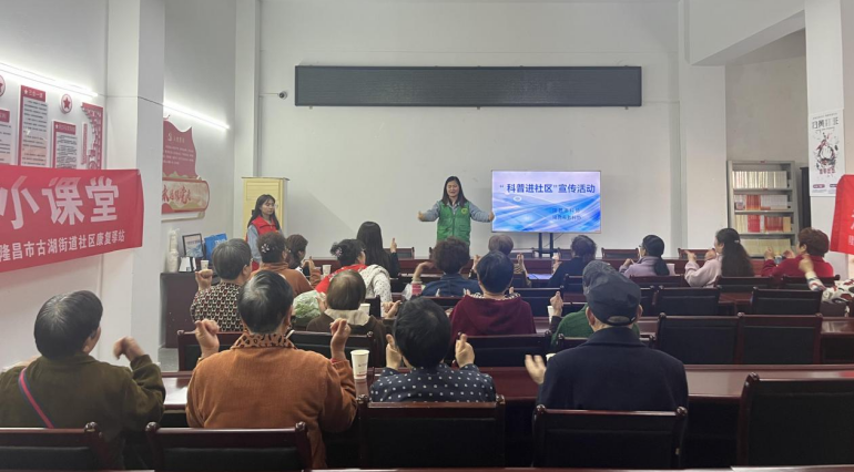 为大力弘扬科学精神,普及科学知识,3月27日,内江市隆昌市科学技术协会、隆昌市老科技工作者协会组织志愿者到古湖街道跃进街社区开展科普活动月“科普进社区”宣传活动,现场共计50余人参与其中。