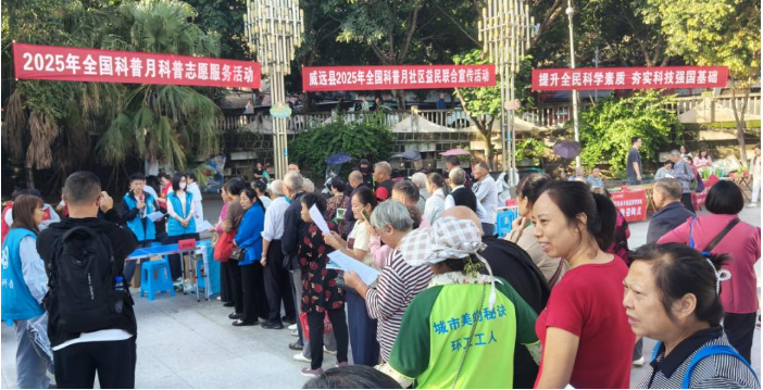 9月24日上午,内江市威远县2025年全国科普月社区益民联合宣传活动在县滨河公园广场举行。活动由威远县科协、严陵镇主办,严陵镇中心街社区承办,全民科学素质行动工作成员单位等20多个部门,企事业单位科协、农技协及县城社区科协参加了这次联合宣传活动。