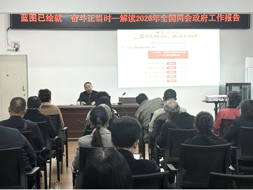 讲座特邀内江市东兴区委党校范毛君老师授课。紧扣政府工作报告核心要义,围绕高质量发展、新质生产力、科技创新、民生保障等重点内容,结合东兴区发展实际,系统解读两会精神实质与实践要求,既有理论高度又有实践深度,为参会人员精准把握政策、明晰工作方向提供有力指导。