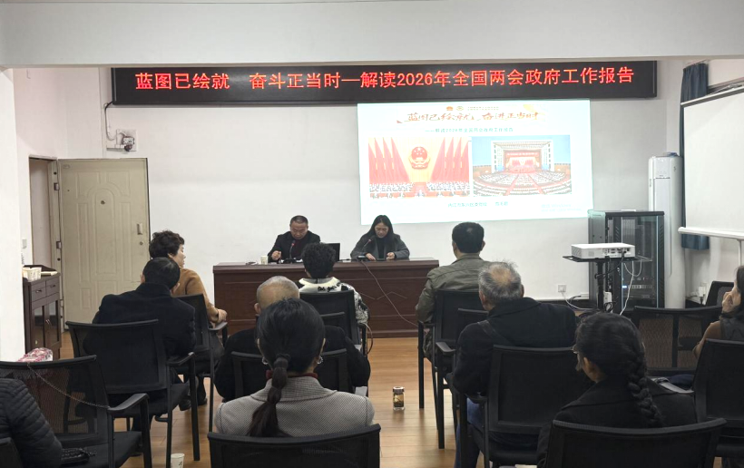 为深入学习贯彻2026年全国两会精神,切实把广大科技工作者思想和行动统一到党中央决策部署上来,3月19日,东兴区科协、东兴区老科协以“蓝图已绘就,奋斗正当时”为主题,组织开展解读全国两会政府工作报告专题讲座。全区科技工作者、老科技工作者代表数十人参加学习。