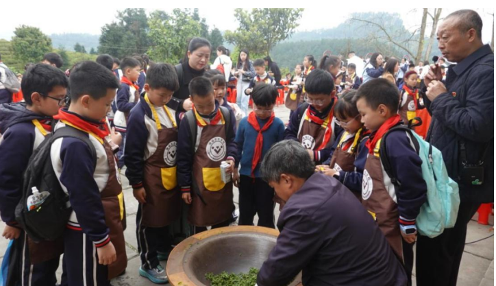 3月27日,来自内江市威远县连界镇博骏双语学校的200余名师生及家长代表,走进复立茶叶种植科普示范基地(小河镇五四茶场),开展了一场别开生面的采茶制茶科普研学游活动。孩子们走出课堂,在青山绿水间亲手采茶、探访茶厂、观察手工炒茶,在实践中感受劳动的快乐与茶文化的魅力。